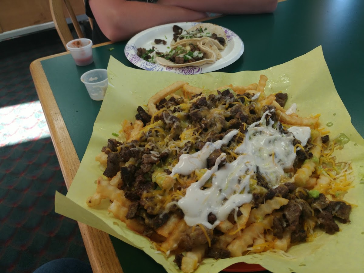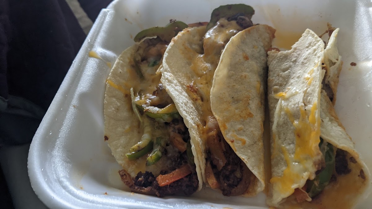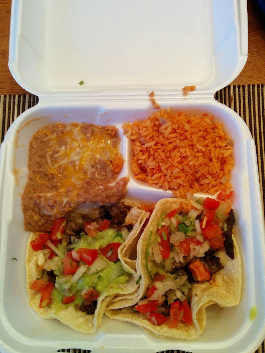 The food was pretty good. I got the #1 (2)tacos rice and beans. I feel that $14 is asking a little much though. The beans were Watery but still tasted fine. The rice was really good. The tacos had so much grease that came out of them it filled up two full napkins and was still dripping in Grease but again they tasted good.